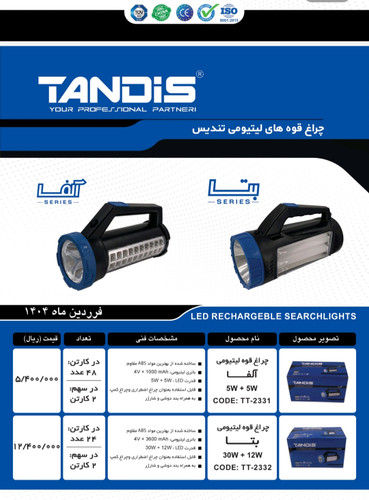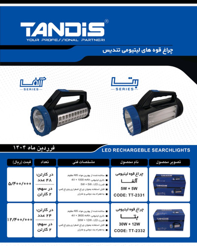 چراغ قوه لیتیومی تندیس مدل بتا کد TT_2332