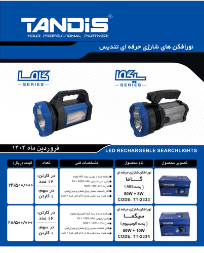 نورافکن شارژی حرفه ای تندیس مدل گاما کد TT_2333