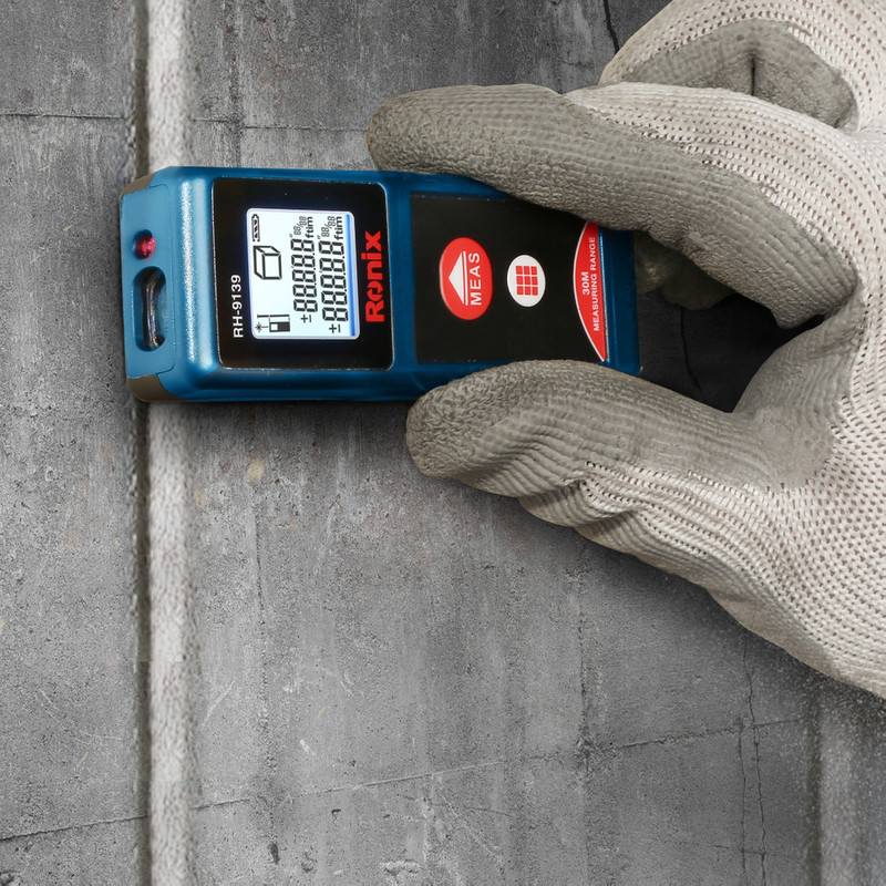 در دنیای امروزی برای سادهتر کردن کارها و فعالیتها، ابزار و وسایلی در هر شاخهای از تکنولوژی و مهارت ارائه میشود. متر لیزری رونیکس مدل RH-9139 یکی از همین ابزارهای فنیای است که میتواند در کارها و فعالیتهای فنی ساختمانی، برقی و بسیاری دیگر کارآمد و مفید باشد. این متر میتواند فاصله، حجم و مساحت را اندازه گیری کند و این امر برای ساختمانسازها، کابینت سازها و اکثریت کارهای فنی نیازمند به متر بسیار مفید است. برد این متر لیزری تا ۳۰ متر است. منبع تغذیه این وسیله کاربردی از باتری تامین میشود. از ویژگیهای این وسیله میتوان به قابلیت اندازه گیری متوال و لحظهای جهت محاسبات جابهجایی، مجهز به قابلیت عملکرد اندازهگیری براساس متر، فوت و اینچ، دارای نور پس زمینه نمایشگر و دقت و سرعت اندازهگیری بالا اشاره کرد.