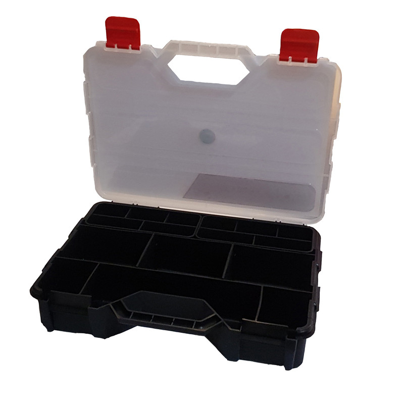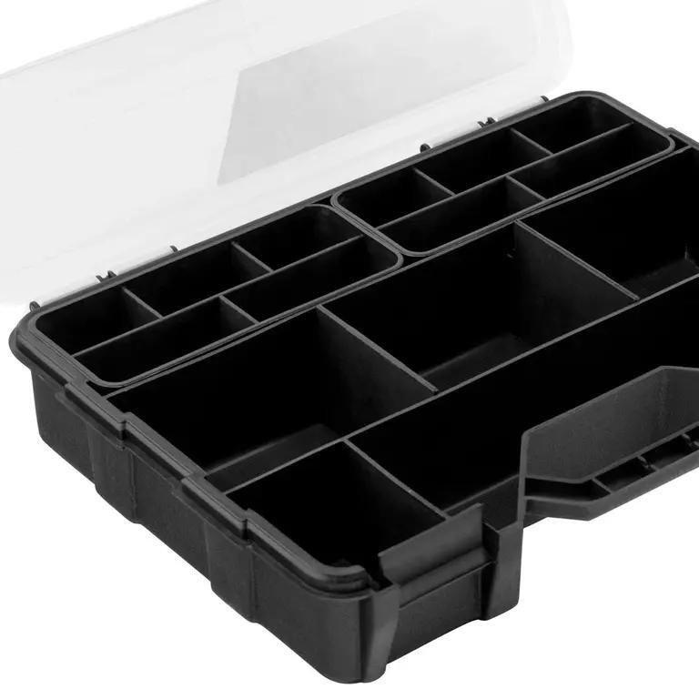 دستهبندی: جعبه و کیف ابزاروزن: 600 گرمجنس: پلاستیکسایر توضیحات: دارای دستگیره دارای 21 محفظه دارای 2 محفظه متحرکابعاد: 31x24x6 سانتیمتر