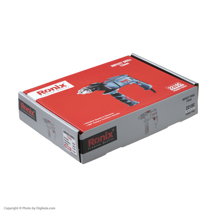 انواع دریلها را از نظر ساختار میتوان به دریلهای ستونی و قابل حمل تقسیم کرد. دریلهای تخریب هم در هر دو گونهی برقی و شارژی قابل تهیه هستند؛ پیستون واقعی درنظر گرفته شده برای این دریلها در مقایسه با دریلهای چکشی معمولی قدرت ضربه و تخریب بیشتری دارند. بارزترین تفاوت میان دریلهای تخریب و دریلهای چکشی هم توانایی ضربه زدن با نوک ابزار نوع پیستونی، آنهم بدون چرخش ابزار است؛ در حالی که در نوع معمولی یا چکشی چنین امکانی فراهم نیست. انواع دریلهای شارژی امروزی معمولا از باتریهای نیکل-کادمیوم یا لیتیومی استفاده میکنند. حتی انواع چکشی این دریلهای شارژی هم در ابعاد بسیار کوچک وجود دارند. دریل C2210 از شرکت رونیکس نیروی خود را از طریق برق شهری تامین میکند. بیشینه سرعت دوران این دریل 3000 دور بر دقیقه است. این دریل توانایی چرخش در دو جهت را دارد. با استفاده از این دریل قادر خواهید بود سوراخهایی حداکثر با قطر 13 میلیمتر در فلز و 13 میلیمتر در سیمان یا مصالح مشابه، ایجاد کنید. این دریل با داشتن قابلیت چکشی و توان 810 دریلی مناسب برای مصارف خانگی و تجاری است.