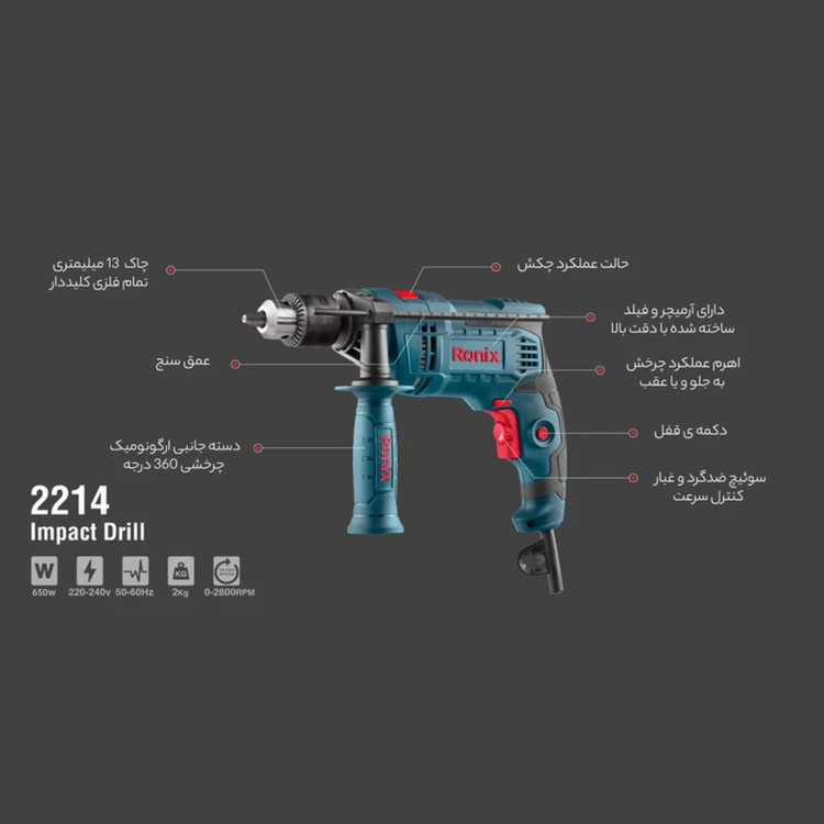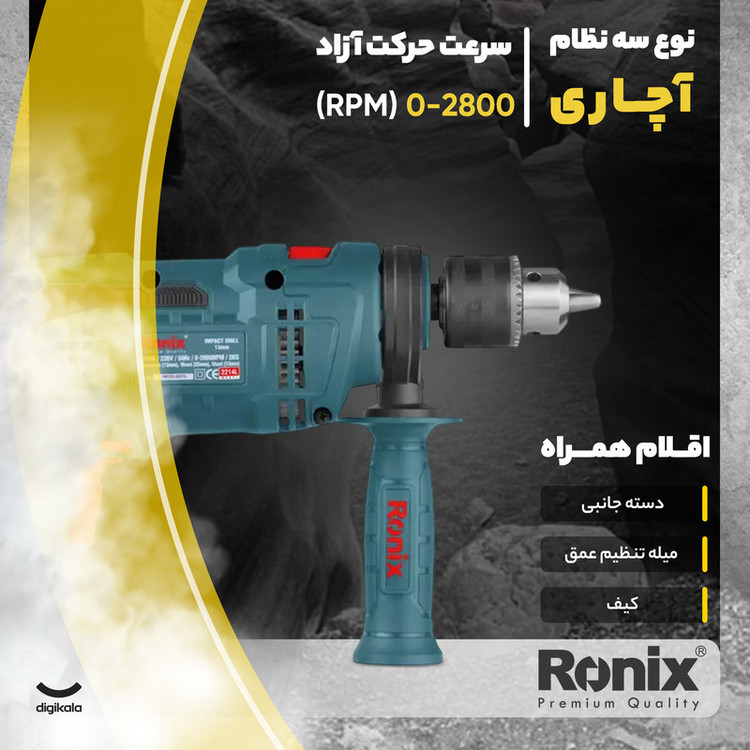 دریل چکشی برقی، ابزاری کارآمد و قدرتمند برای کاربریهای خانگی و حرفهای است. این دستگاه با قابلیت سوراخکاری در چوب، فلز و بتن، انتخابی عالی برای افراد علاقهمند به انجام پروژههای DIY و حرفهای میباشد. مجهز به موتور ۷۵۰ وات با سرعت گردش متغیر تا ۳۰۰۰ دور در دقیقه، این دریل امکان انجام سوراخکاری دقیق و مؤثر را فراهم میکند. قابلیت چکشی برای استفاده در مصالح سخت و سهنظام فلزی ۱۳ میلیمتری با قفل سریع، عملکردی حرفهای را به کاربران ارائه میدهد. طراحی ارگونومیک و دسته نرم ضدلغزش در این دریل، استفاده مداوم را راحت و قابل کنترل میکند. وزن مناسب و کابل ۲ متری، آزادی عمل بیشتری در حین کار فراهم میآورد و راحتی بیشتری را در استفاده روزمره به ارمغان میآورد. این دستگاه همچنین دارای قفل سوئیچ برای انجام کارهای مستمر و کیف حمل مقاوم است که ایمنی و راحتی را برای کاربر تضمین میکند. در نهایت، این دریل چکشی برقی بهعنوان یک راهکار مطمئن برای سوراخکاری حرفهای و کنترل دقیق، در محیطهای کاری متنوع معرفی میشود.