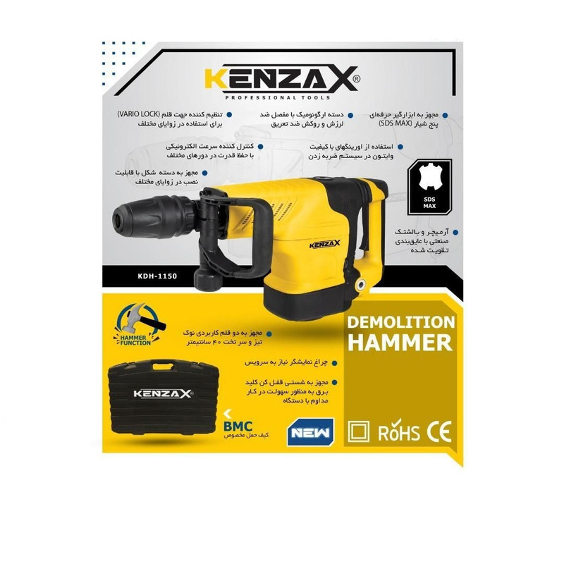بتن کن 11 کیلویی کنزاکس،تک کاره می باشد (فقط تخریب) دارای توان 1500 وات است. این دستگاه دارای دیمر یا همان کنترل سرعت می باشد که در تخریب می توان قدرت دستگاه رو کم تر کرد. قدرت هر ضربه 5تا 26 ژول می باشد.